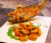 蛋白魚子醬燴中洋蝦
